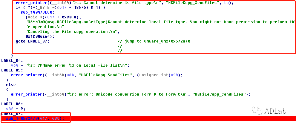 ´Óº¯ÊýŲÓÃÕ»ÖÐvmware_vmx+0x58b21µØµãÏòÉÏ×·ËÝ£¬¶¯Ì¬µ÷ÊÔ³ÌÐò£¬½ÏÁ¿³ÌÐòÕý³£ÔËÐÐÓëÒì³£Íß½âµÄº¯ÊýŲÓÃÇø±ð£¬¶¨Î»µ½Óë³ÌÐòÍß½âÏà¹ØµÄº¯Êýsub_1400965A0¡£