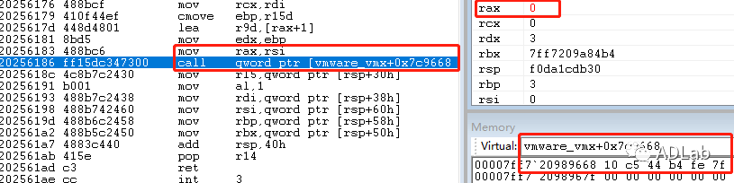 ´Ósub_140572A70×îÖÕÖ´Ðе½sub_1400960C0£¬µÖ´ïÈçÏÂλÖý«vmware_vmx+0xb1ed90´¦µÄÖµ¸³¸øÁËrsi£¬¼´Îª0¡£